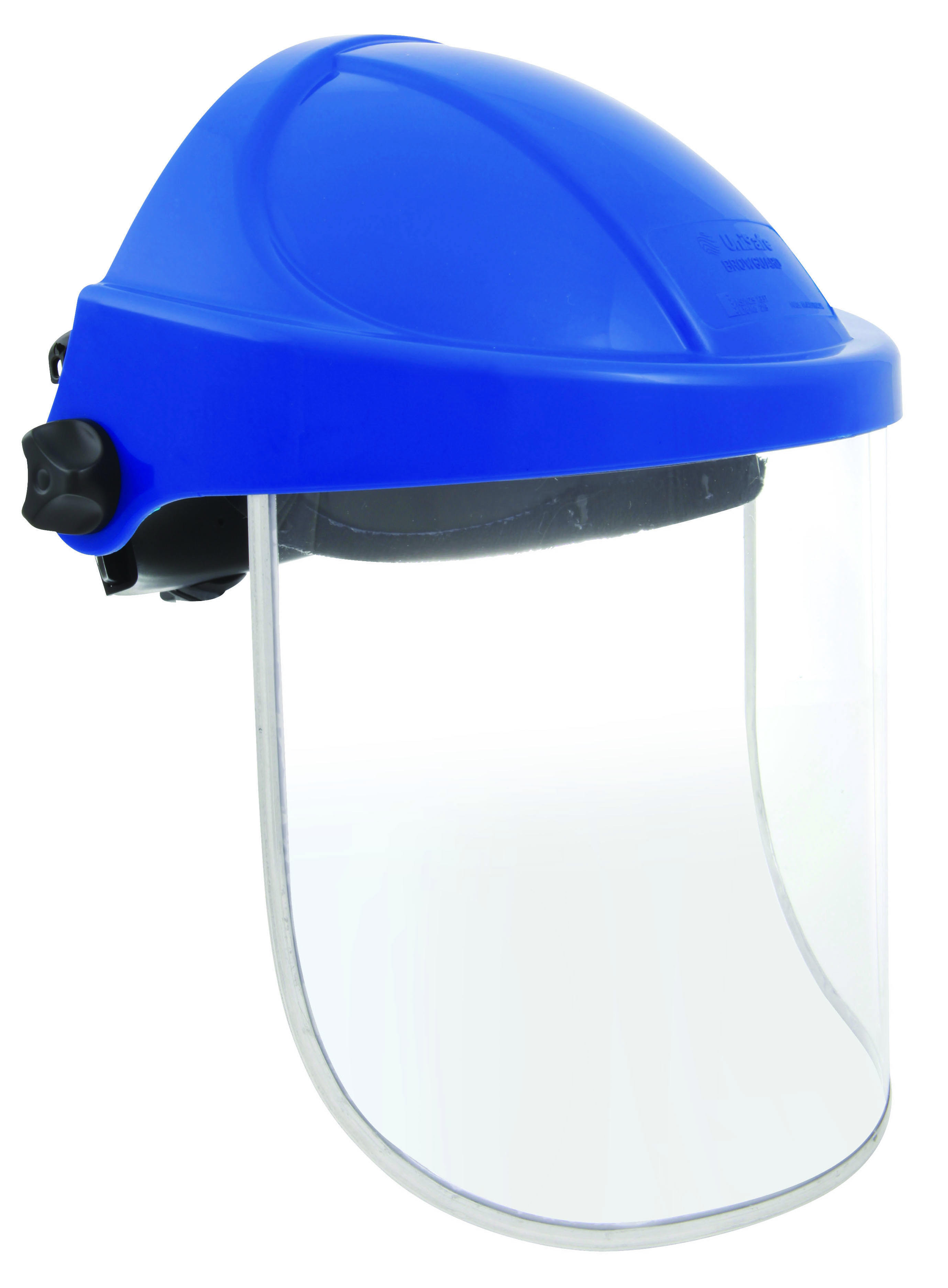 - Complete with blue browguard and polycarbonate visor this combination offers high impact (V) protection and resistance to waterbased liquids eg. biological, acids and weak solvents