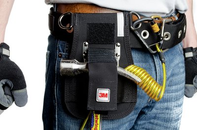 For optimal performance, the Hammer Holster should be used with the 3M DBI SALA Hook2Quick Ring with Tail. 1" D Rings are located on both sides of the holster allowing for the user to tether their tool however they prefer. A Hook and loop closure strap protects hammers from accidental drops during transport, but keeps the tool available when in use. This combination also includes a 3M DBI SALA Hook2Quick Ring Coil Tether with Tail, providing everything necessary to tie off a hammer.