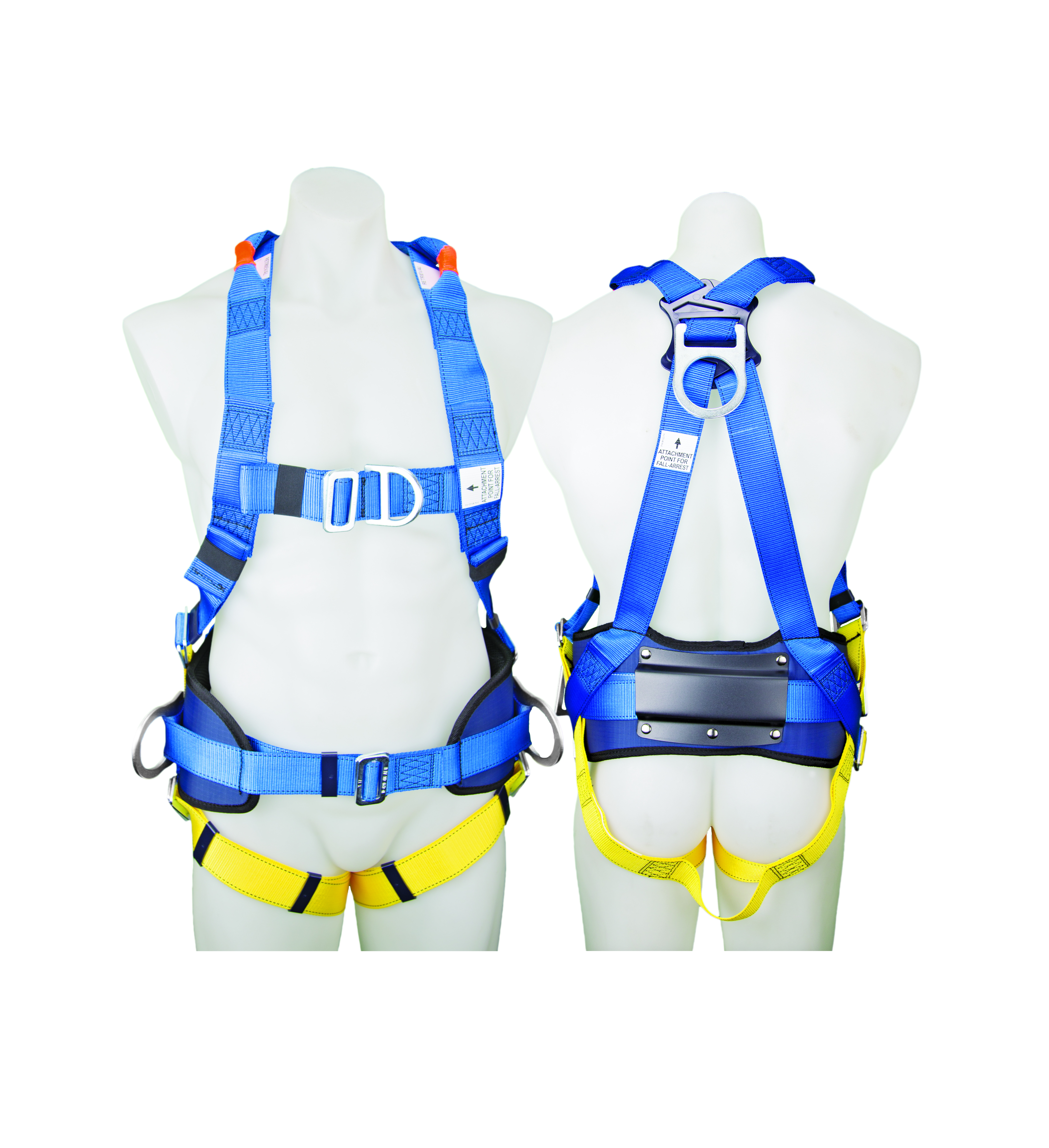 - Construction harness with front, rear and side D-ringswaist belt