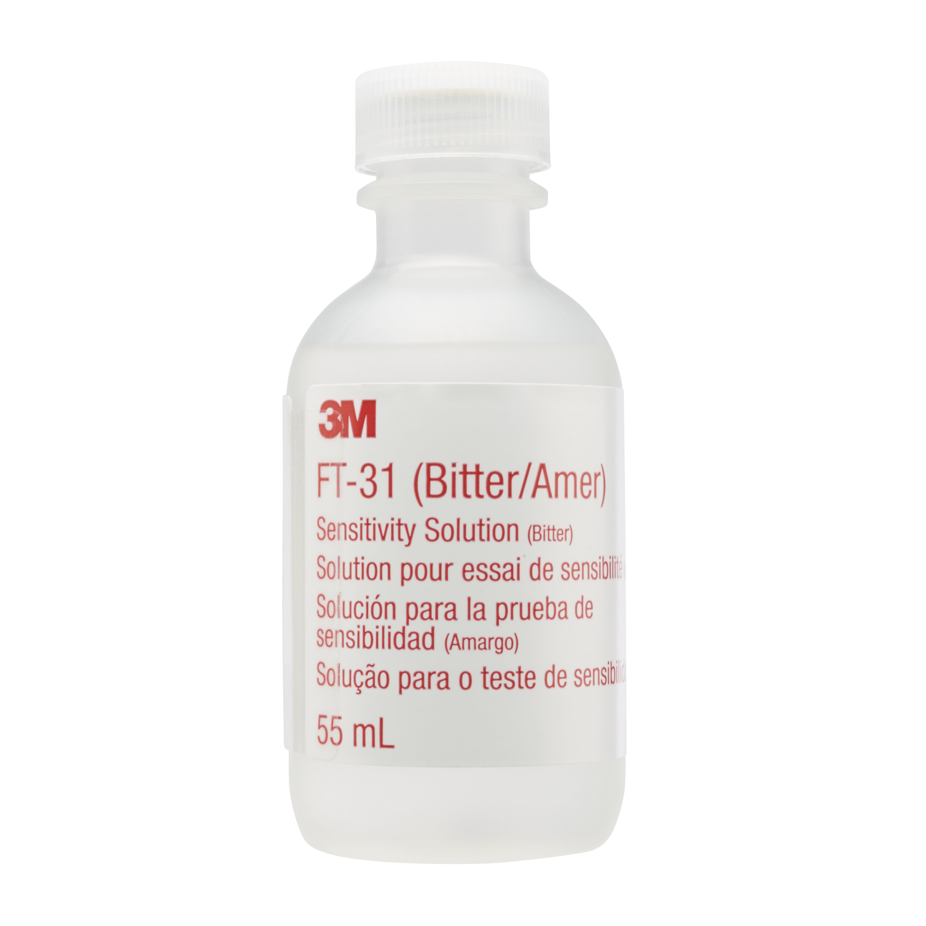 The 3M Sensitivity Solution FT-31 is used to test the sensitivity of the respirator wearer to a bitter solution. It is used with the 3M Qualitative Fit Test Apparatus Kit FT-30 Bitter.