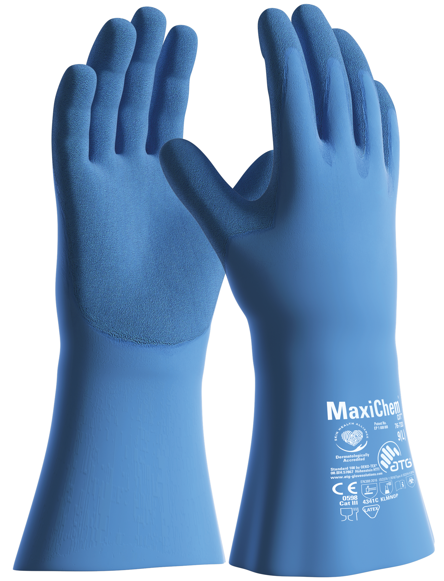 MaxiChem is a new generation of chemical resistant gloves that combines worker comfort with optimized grip and skin protection. All MaxiChem gloves are dermatologically accredited by the Skin Health Alliance as part of our HandCare program. They are also pre-washed prior to packaging enabling us to guarantee them "Fresh out of the pack" as certified by Oeko-Tex. MaxiChem is designed and developed for those working with chemicals requiring high level of protection and is certified as a Type A product according to EN ISO 374:2016 + A1:2018 and food approved(EU). Now built with our innovative TRItech technology that enables it to be 30% thinner and 100% more comfortable whilst maintaining good mechanical performance.