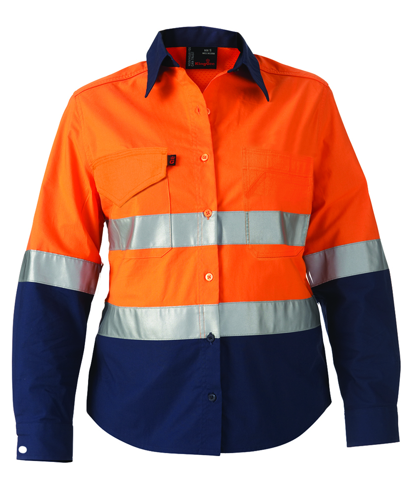 KingGee Workcool2 Womens Hi Vis Ref Spliced Shirt Long Sleeve (Orange/Navy)
