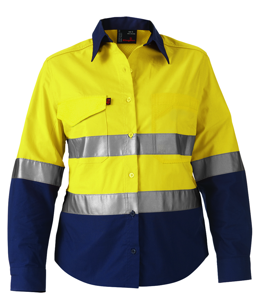 KingGee Workcool2 Womens Hi Vis Ref Spliced Shirt Long Sleeve (Yellow/Navy)