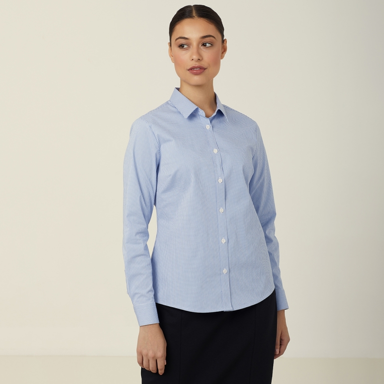 NNT Womens Avignon Gingham Check Long Sleeve Slim Fit Shirt CATUKS (Light Blue White)