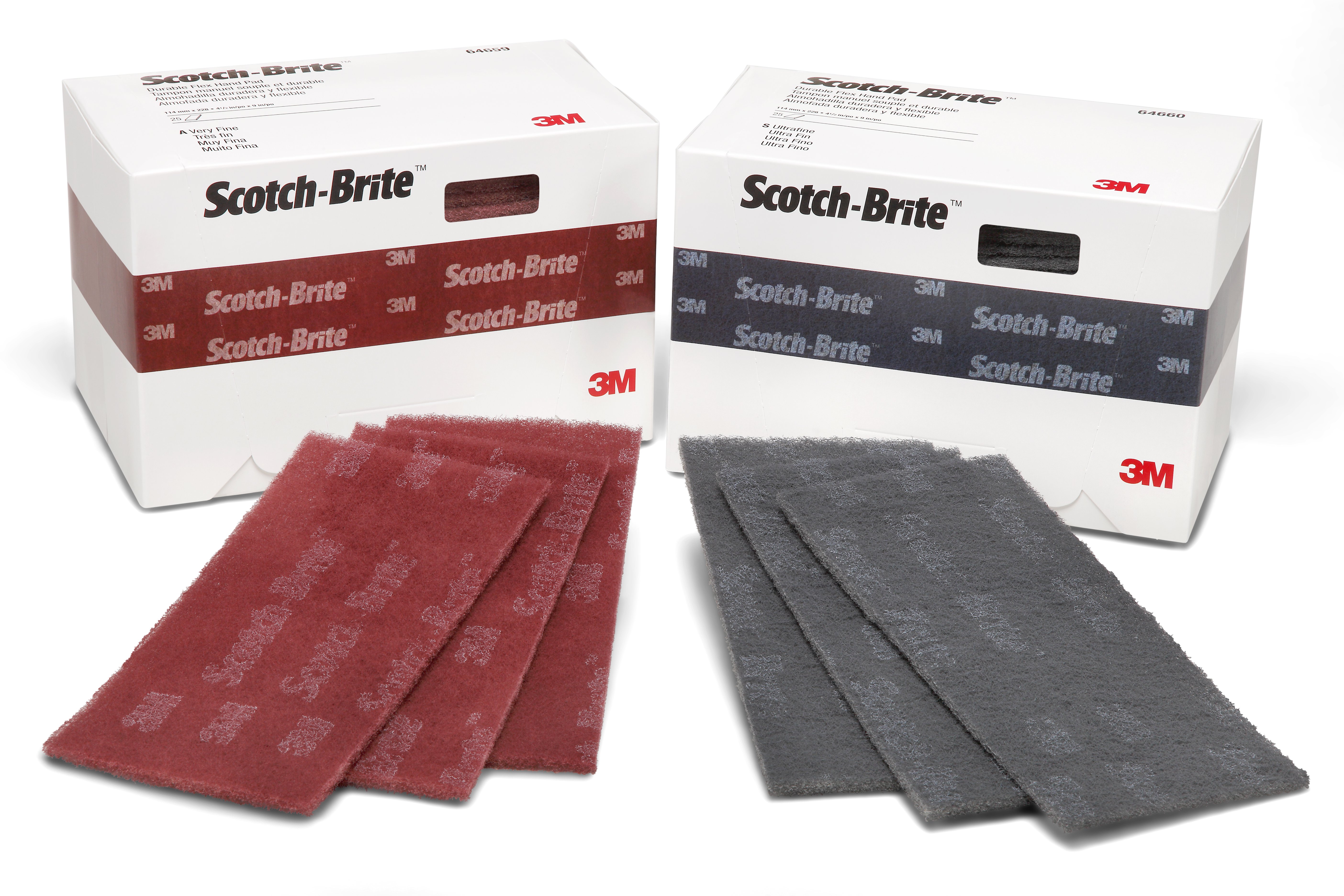 The performance of Scotch-Brite Durable Flex Hand Pad is comparable to steel wool, but our Scotch-Brite pads won't shred during use, rust after use, or create fine metal splinters. The non-woven, open-web material resists loading and can be used dry, with water or some solvents, and rinsed clean for reuse. This multipurpose pad can be used by hand for precise control. Breakthrough fibre coating technology allows Scotch-Brite abrasive products to cut faster and produce a more consistent scratch than competitive non-woven abrasive products, reducing the time and effort it takes to finish parts. Combining abrasives with the fibres creates an abrasive system that delivers consistent results for the life of the product. Our Scotch-Brite industrial abrasive products' non-woven web keeps the abrasive minerals cutting at high performance by limiting clogging of the fibres.