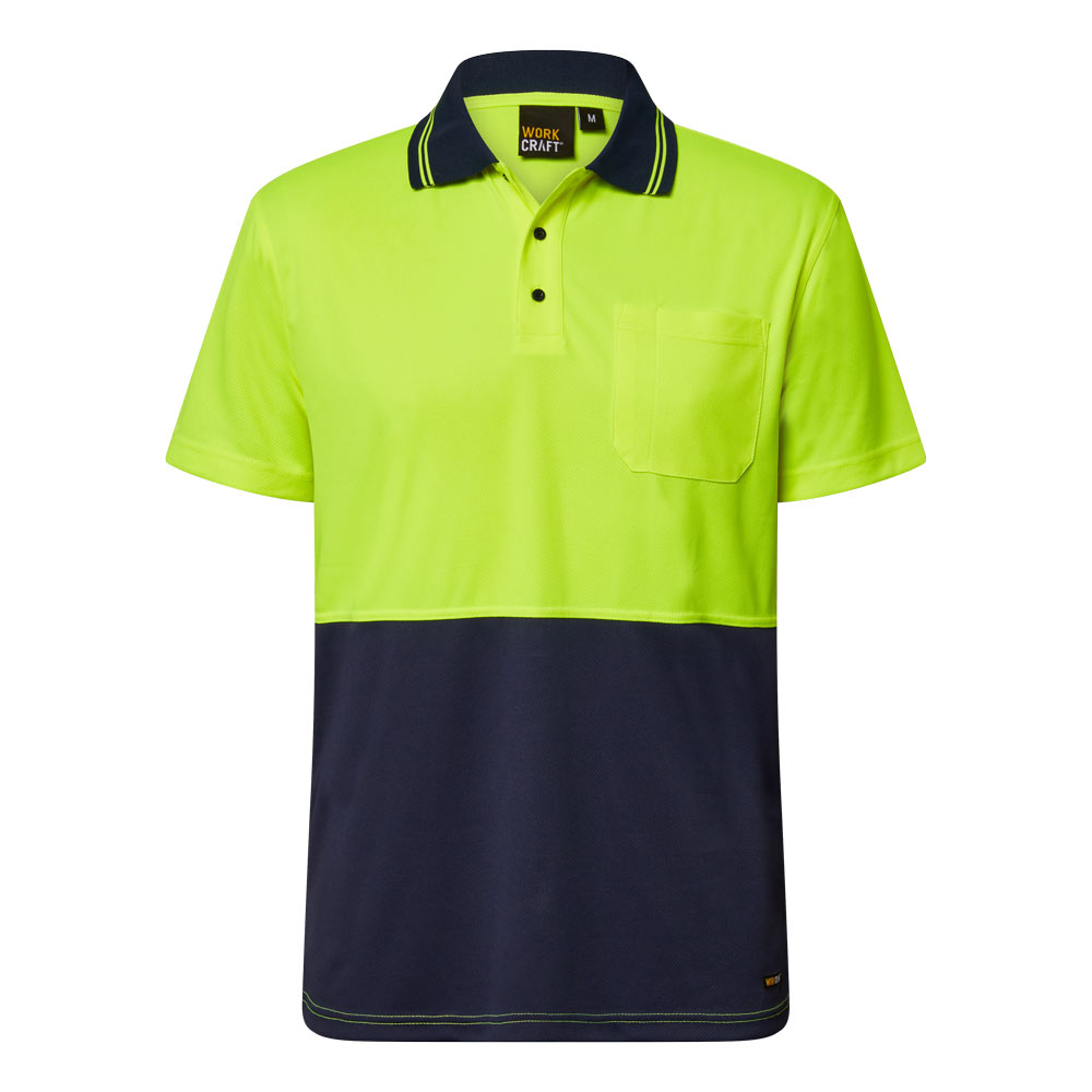 Workcraft Hi Vis Lightweight Short Sleeve Micromesh Polo With Pocket (Navy/Yellow)