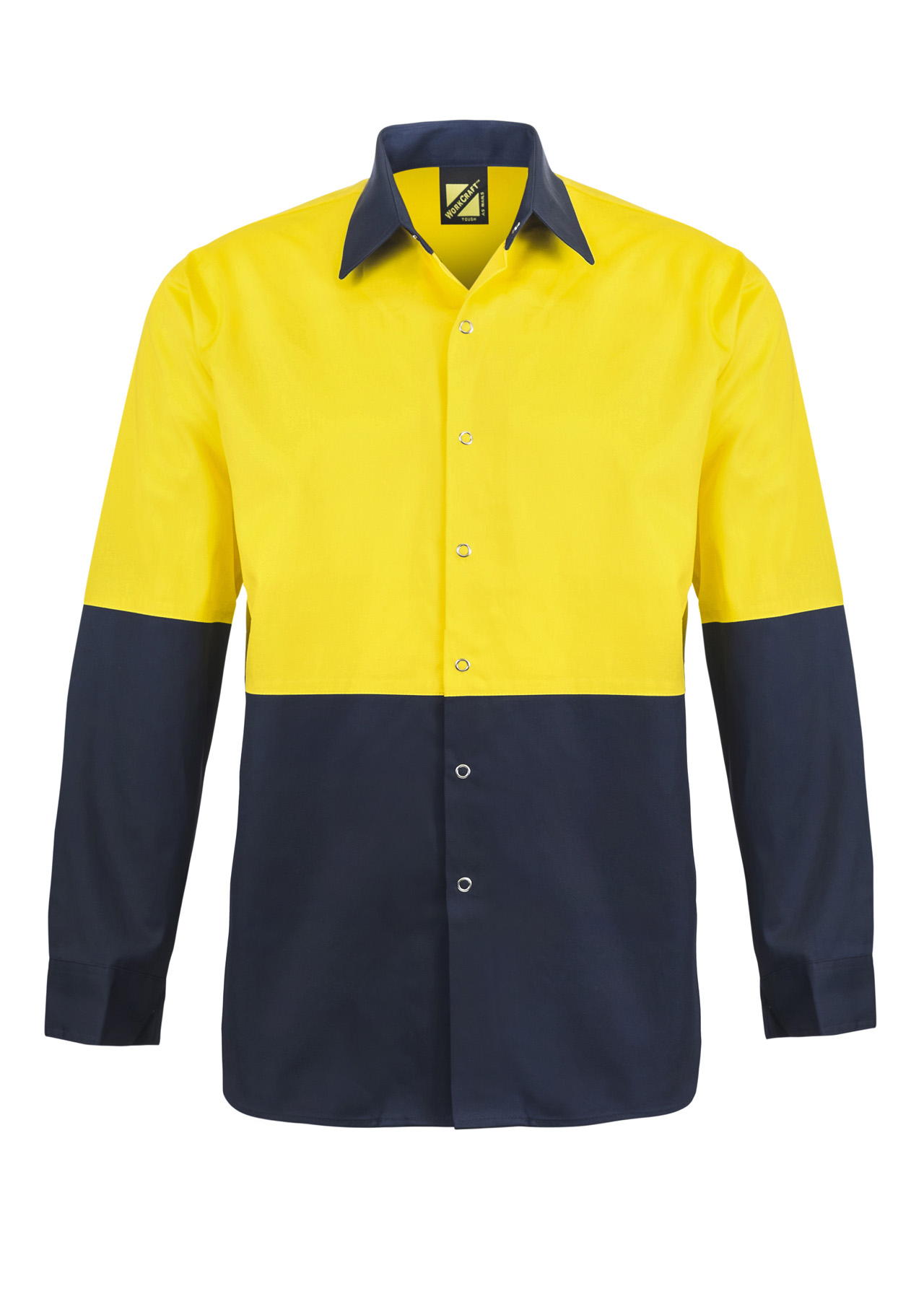 Workcraft Hi Vis Long Sleeve Cotton Drill Food Industry Shirt With Press Studs And Spare Pockets (Navy/Yellow)