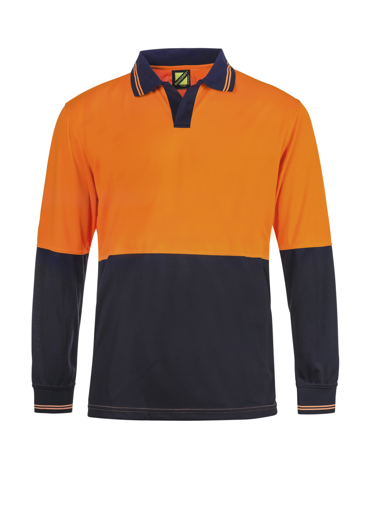 Workcraft Hi Vis Long Sleeve Food Industry Micromesh Polo (Navy/Orange)