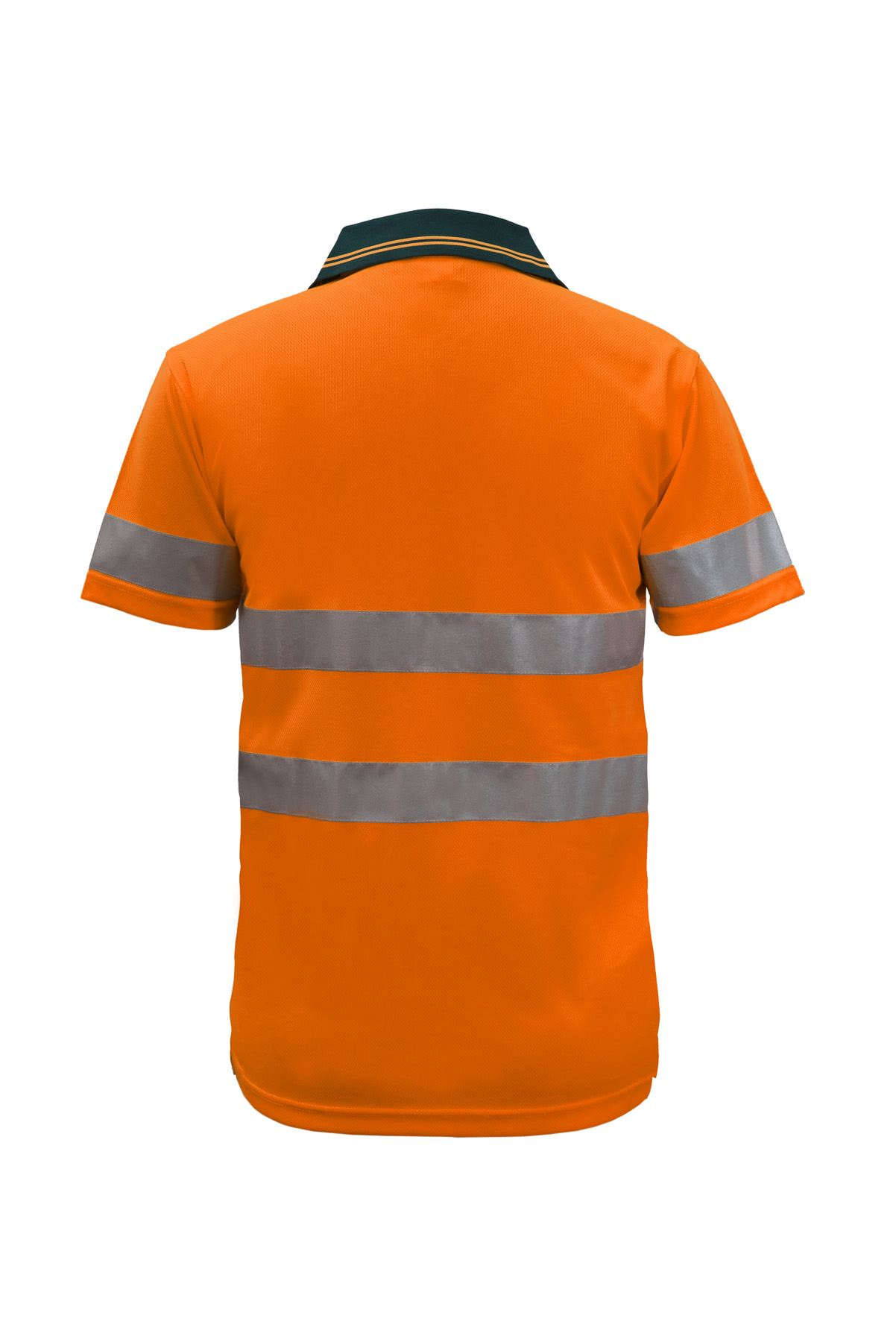 Workcraft Hi Vis Short Sleeve Micromesh Reflective Polo With Pocket (Navy/Orange)