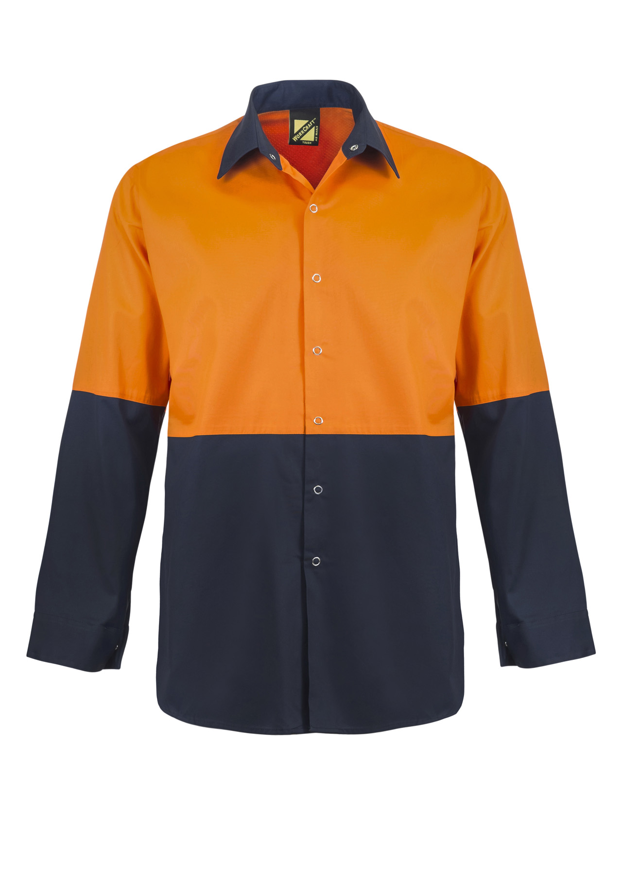 Workcraft Lightweight Hi Vis Long Sleeve Vented Cotton Drill Food Industry Shirt With Press Studs And Spare Pockets (Navy/Orange)
