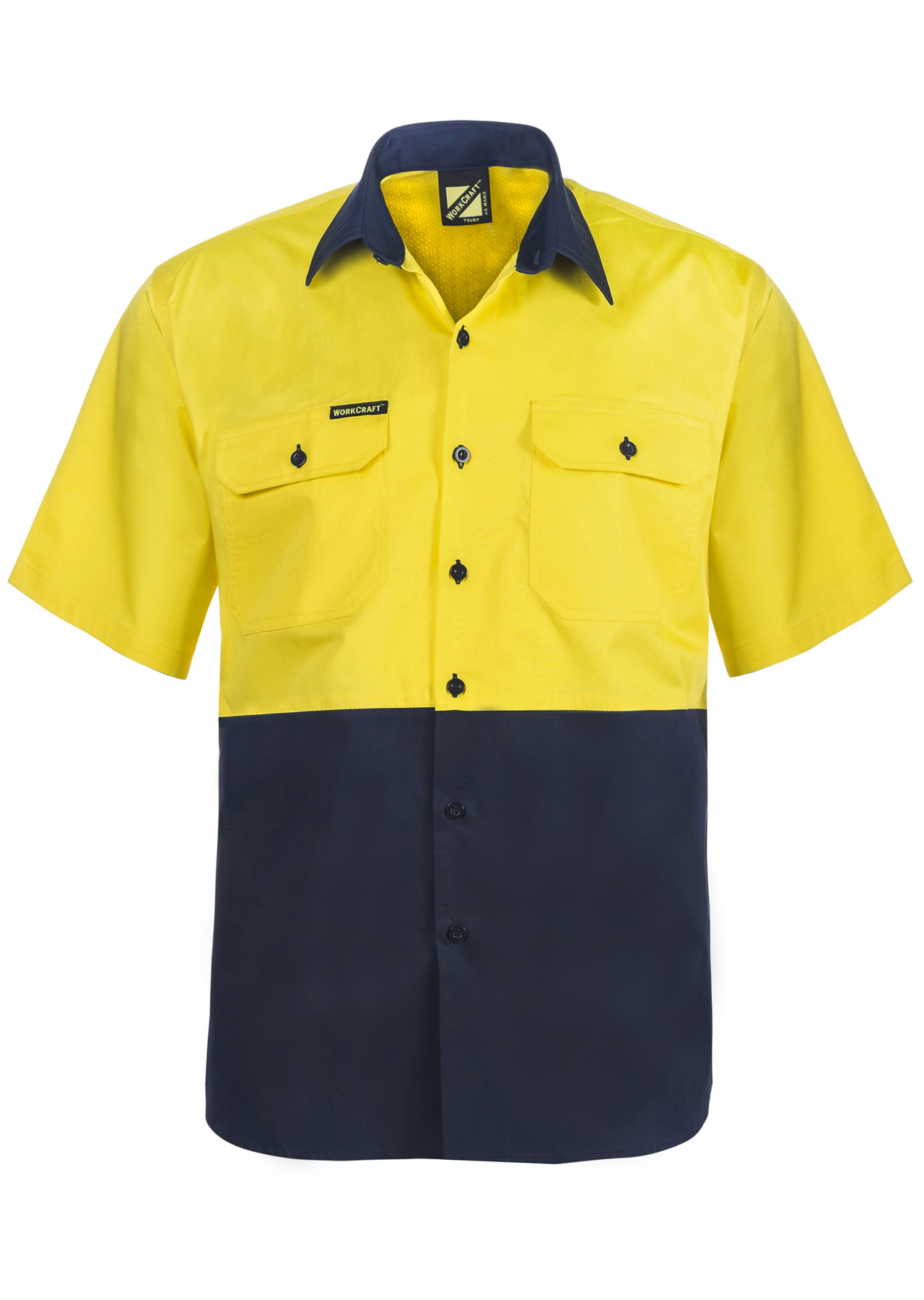 Workcraft Lightweight Hi Vis Short Sleeve Vented Cotton Drill Shirt (Navy/Yellow)