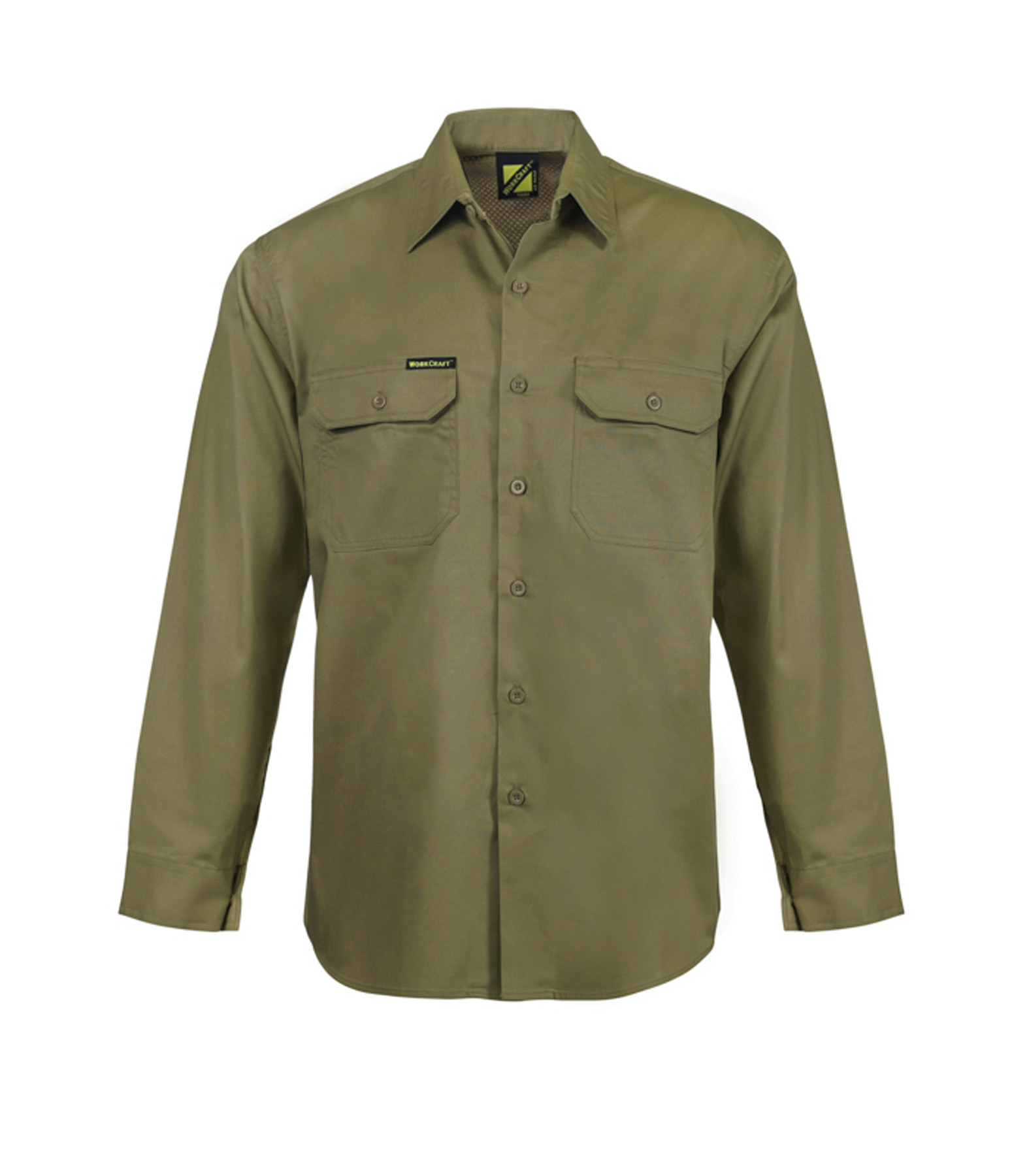 Workcraft Lightweight Long Sleeve Vented Cotton Drill Shirt (Khaki)