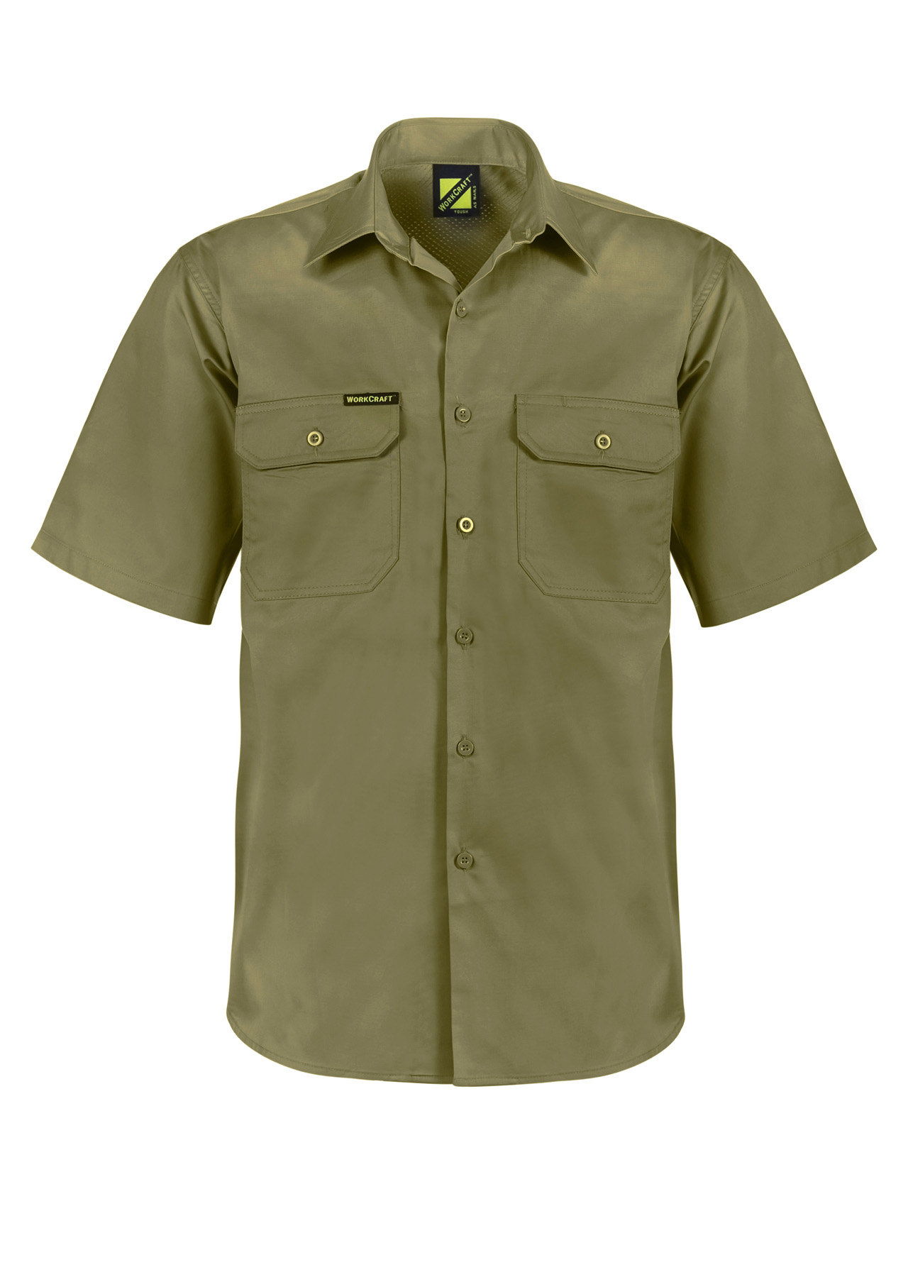 Workcraft Lightweight Short Sleeve Vented Cotton Drill Shirt (Khaki)