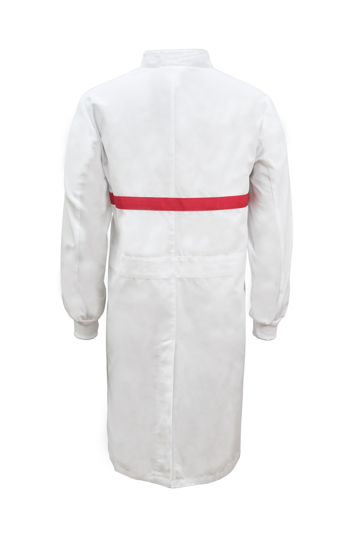 Workcraft Long Sleeve Food Industry Long Length Dustcoat With Contrast Trims On Chest (White/Red)