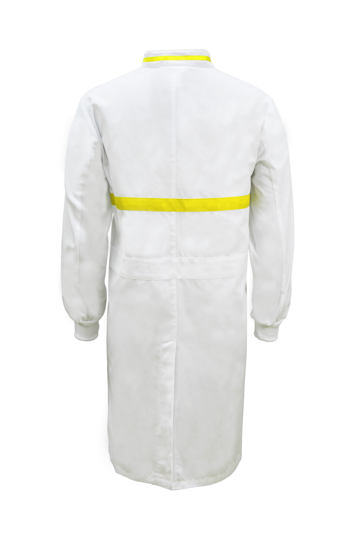 Workcraft Long Sleeve Food Industry Long Length Dustcoat With Contrast Trims On Collar And Chest (White/Dayglow Yellow)