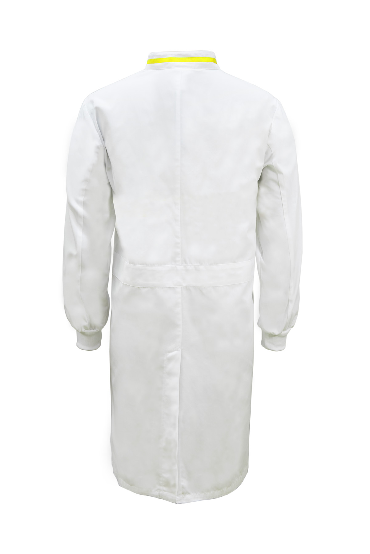 Workcraft Long Sleeve Food Industry Long Length Dustcoat With Contrast Trims On Collar (White/Dayglow Yellow)